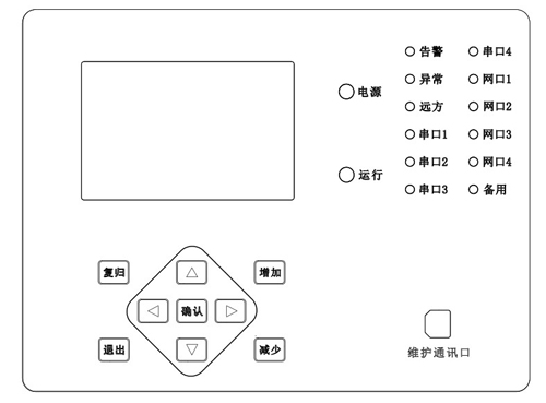 基本配置 4 个以太网口,支持 10/100BASE-T自适应以太网络通信;基本配置 4 个串行通信口,支持 RS-485/RS-232 通信;基本配置 1 个维护口,支持现场调试诊断功能。