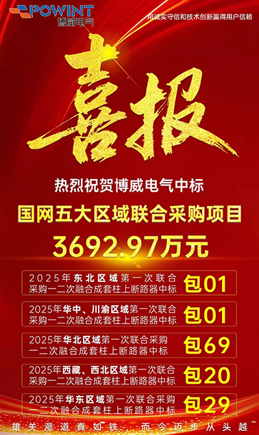荷风六月,捷报频传。在国家电网2025年华中川渝、华北、西藏西北、东北、华东区域第一次联合采购项目中,博威电气凭借行业领先的技术实力和卓越的产品性能,成功中标一二次融合成套柱上断路器产品。此次中标实现了国家电网五大区域联合采购项目的"大满贯",总中标金额达3692.97万元。